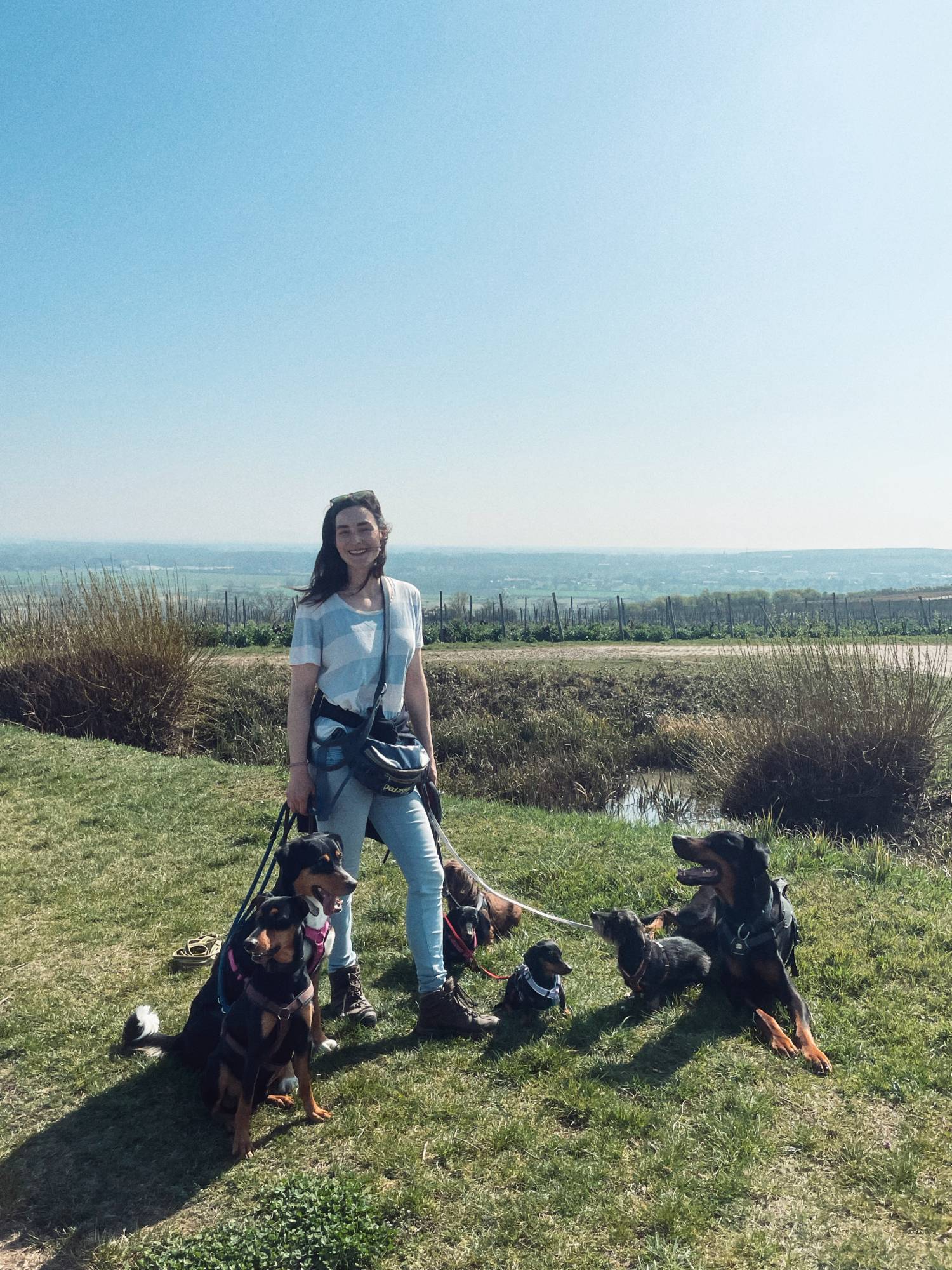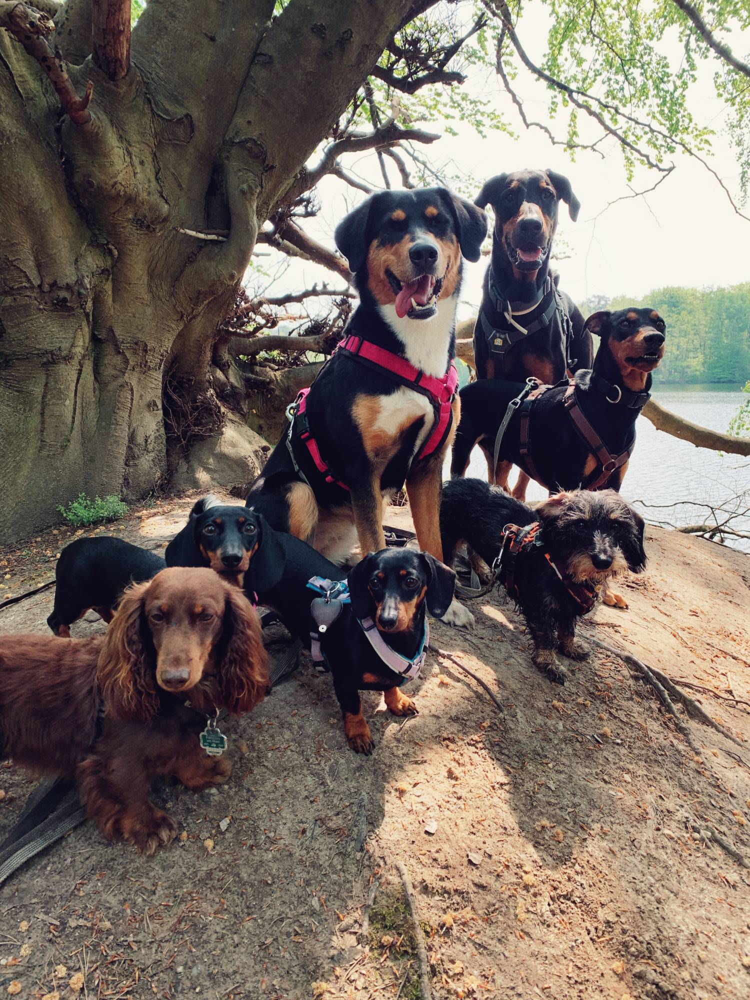 "Unser Dackel hat bei den Wanderungen mit den anderen Hunden immer eine tolle Zeit. Es ist so viel wert, dass er in dem Rahmen sinnvolle und langfristige Sozialkontakte pflegen kann. Wir freuen uns immer in den Stories auf Instagram verfolgen zu können wie sich Freundschaften unter den Hunden entwickeln und wie liebevoll und konsequent Marie mit den Hunden arbeitet und trainiert. Wir sind rundum begeistert."